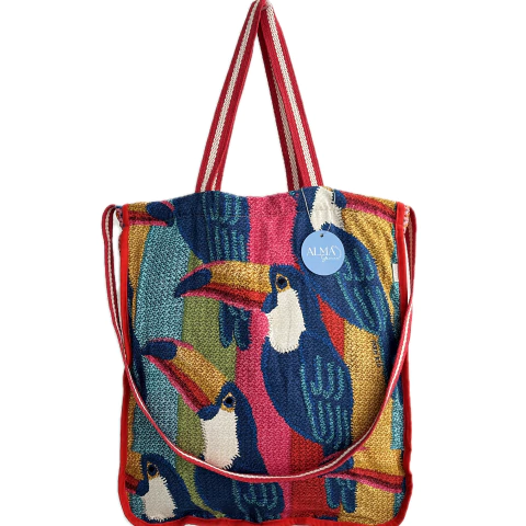 Maxi Ecobag com forro liso, bolsinho interno, três alças reforçadas e presilha lateral.